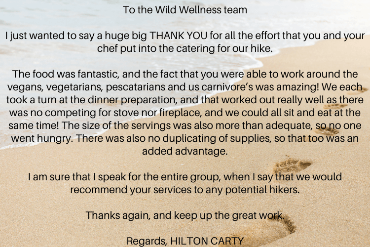 Catering on Cape Natures Whale Trail does not have to be complicated – all you have to do is let us know your dietary requirements and we will deliver everything for you to heat up, assemble and enjoy. Its perfect for after a longs days hike.